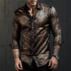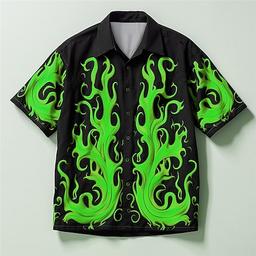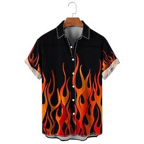 Men's Flame Shirt Button Up Shirt Short Sleeve Casual Daily Wear Going out Weekend Autumn / Fall Turndown Print Button-Down Yellow Purple Green
