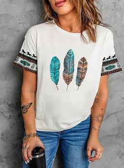 Women's Summer Tops Graphic Tribal Fashion Western Casual Short Sleeve Round Neck Regular Tops Daily Going out Weekend Patchwork Print White Summer Spring