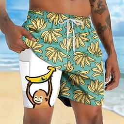 Hombre Gracioso Mono Plátano Pantalones cortos forrados Bañador 2 en 1 Pantalones de Natación Media cintura Hawaiano Vacaciones Festivos Ropa de playa Bolsillos laterales con forro de compresión