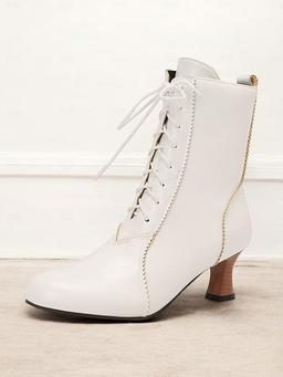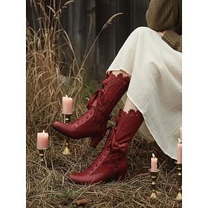 Botines de piel sintética con cordones rojos de estilo victoriano para mujer con tacón medio: calzado de inspiración retro vintage para uso formal o informal