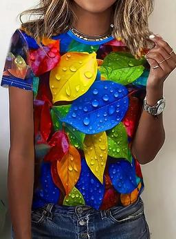 Vain sovelluksessaNaisten T-paita Kuvitettu Vintage Muoti Tyylikäs Pitkähihainen Tiukka pyöreä kaula-aukko Pyöreä kaula-aukko Tavalliset topit Päivittäin Viikonloppu Painettu Sininen Rubiini Purppura Apila Kesä Kevät