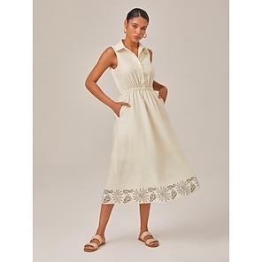 Naisten Midimekko Kesämekko Slip Mekko Loma Vapaa-aika Rantatyyliä Syntymäpäivä Päivittäin Pyhäpäivä Loose Fit Kukka Kuvitettu Lyhythihainen Tiukka pyöreä kaula-aukko Valkoinen Kesä