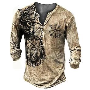 Vain sovelluksessaMiesten Kuvitettu Viikinki Henley-paita Pitkähihainen 3D-tulostus Päivittäin Vapaa-aika Vintage retro Kausaliteetti Pyhäpäivä Bile 봄 & Syksy Khaki Henley Henley T-paita