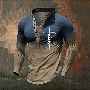Vain sovelluksessaMiesten Kuvitettu Väripalikka Usko Henley-paita Pitkähihainen 3D-tulostus Päivittäin Retro / vintage Vapaa-aika Pyhäpäivä Bile Festivaali 봄 & Syksy Sininen Apila Khaki Harmaa Henley Henley T-paita