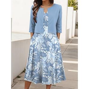 Vain sovelluksessaNaisten Midimekko Rento mekko Mekkosetti Muoti Moderni Päivittäin Hiekkaranta Viikonloppu Normaali Kukka Puolihiha V kaula-aukko Sininen Vaalean vihreä Punastuvan vaaleanpunainen Rubiini Kevät Syksy