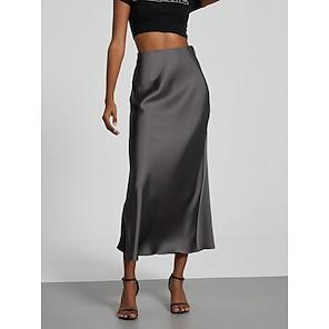 Vain sovelluksessaNaisten Hame Vartalonmyötäinen Tyylikäs Muoti Midi Korka vyötärö Hameet Tavallinen Mikrojoustava Juhla Katu Musta Viini Khaki Tumman harmaa Kevät Satiini Polyesteri