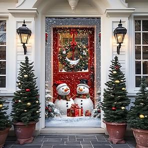 Vain sovelluksessajouluovikoristeet oven kannet joulun hassu lumiukko ovi kuvakudos oven verho koriste tausta sisä-/ulkoovi banneri etuovelle maalaistalon lomajuhlien sisustustarvikkeet