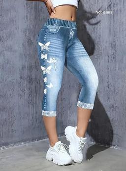 Naisten legginsit capri-housut korkea elastisuus loma vintage muoti sääri-pituus keskikorkea vyötärö kukkakuosi graafinen perhospainatus hengittävä pehmeä loma katukausi tumma harmaa sininen slim fit