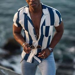 Miesten Kesä paita Rento paita Rantapaita Button Up paita Raidalliset paidat Rubiini Sininen Purppura Oranssi Harmaa Lyhythihainen Raidoitettu Kaulus ulko- Loma Painike alas Vaatetus Polyesteri Muoti