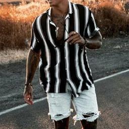 Miesten Paita Kesä paita Kuubalainen paita Button Up paita Leirin paita Raidalliset paidat Mustavalkoinen Sininen Oranssi Lyhythihainen Raidoitettu Sänkyjen avaus Katu Kausaliteetti Painike alas
