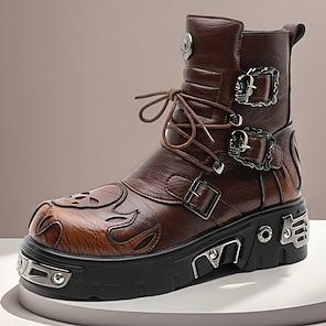 miesten steampunk-moottoripyöräsaappaat, joissa kaksinkertaiset solkihihnat ja luja pohja, ruskeat nahkaiset goottikengät ratsastukseen ja cosplayan