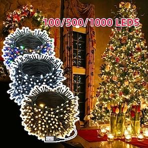 Uniquement sur l'applicationguirlandes lumineuses led guirlandes lumineuses extérieures étanche ip65 guirlandes de noël 30m-300leds 22m-200leds 12m-100leds 7m-50leds 8 modes alimenté par batterie dimmable / minuterie avec télécommande pour la fête