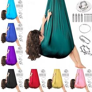 Uniquement sur l'applicationBalançoire thérapeutique d'intérieur pour enfants et adolescents. Le hamac de yoga aérien réglable a un effet apaisant sur les besoins des enfants.