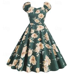 Élégant Années 1950 Inspiré vintage Mi-long Robe Robe Trapèze Robe de thé Fleur / Floral Ligne A Déguisement Femmes Noël Carnaval Nouvel An Retour à la maison Tenue quotidienne Enterrement de Vie de
