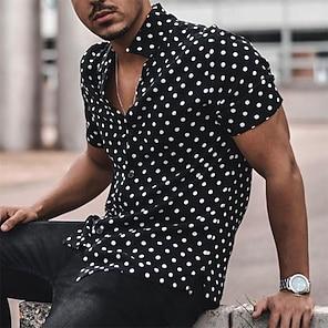 Uniquement sur l'applicationHomme À pois Formes Géométriques Chemise Chemise Boutonnée Manche Courte Sports Mode Designer Quotidien Fête Été Printemps Col Rabattu Imprimé Noir