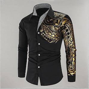 Uniquement sur l'applicationHomme Chemise habillée Chemise à Col Chemise Boutonnée Graphique Mariage Vacances Noir Blanche Vert Claire Vin manche longue Col Été Printemps Vêtement Tenue