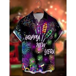 Uniquement sur l'applicationNouvel an Homme Vacances bonne année Chemise boutonnée Manches courtes Artistique Décontractées Confortable Extérieur Vacances Plein Air Hiver Printemps été Col de Chemise Imprimé Noir