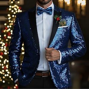 Uniquement sur l'applicationHomme Veste blazer Col de fermeture Noël Fête Éclat Couleur Unie Blazer Bleu Argent Rouge Coupe sur mesure à boutonnage simple à un bouton