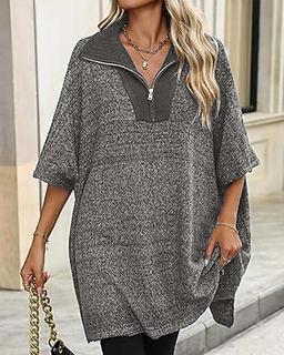 Femme Pull Chandail Décontractées Couleur unie Demi fermeture éclair Zippé Demi Manches Hauts longs Tricoter du quotidien Noir Beige Automne Hiver