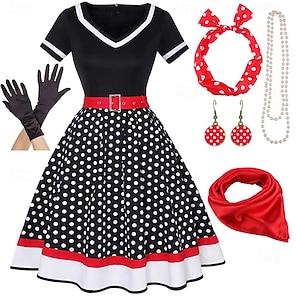 Uniquement sur l'applicationTenue des années 50 robe évasée ceinture 7 pièces accessoires des années 1950 ensemble rétro vintage robe trapèze femme cosplay costume fête date festival