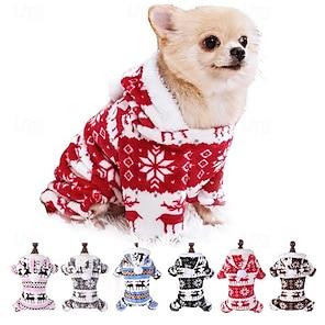 Uniquement sur l'applicationPyjama de Noël pour chien - rouge &Combinaison pour animaux de compagnie avec motif flocon de neige et renne blanc - vêtement douillet en flanelle pour les fêtes, idéal pour les petits chiens