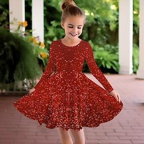 Solo per APPragazze' 3D A quadri Fiocco di neve Vestito Manica lunga Stampa 3D Autunno Inverno Da mare Sportivo Giornaliero stile sveglio Informale Bellissimo Bambino 3-12 anni Abito casual Abito linea A Sopra