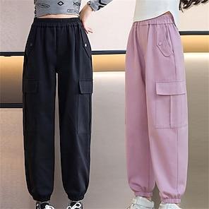 Solo per APPBambino Da ragazza Pantaloni Tinta unica Streetwear Tasche Scuola 4 anni + Primavera Rosa Beige Grigio