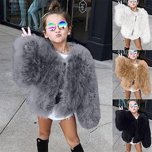 Solo per APPBambini Ragazze Cappotto in Pelliccia Sintetica Tinta unica Moda Scuola Cappotto Capispalla Dai 4 anni in su Autunno Nero Bianco Cammello