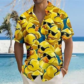 Solo per APPPer uomo Animale Divertente Anatra Camicia Camicia con Bottoni Manica Corta Moda Casual Vacanza Abbigliamento casual alla moda Abbigliamento mare Estate Autunno Collo ripiegato Stampa 3D camicie con