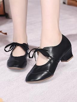 scarpe da ballo da donna con lacci dorati e tacco basso a blocco, perfette per spettacoli di ballo da sala, latino e jazz