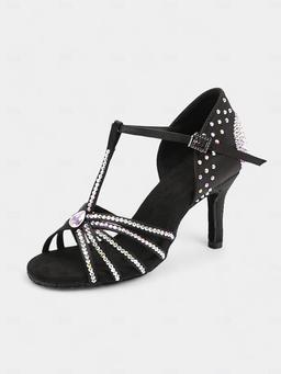 scarpe da ballo latino in raso nero da donna con cinturini in cristallo - ideali per balli da sala e salsa