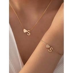 Set di collana e bracciale con 26 iniziali personalizzate in oro con cuore e lettera - raffinati gioielli con lettere per donne e ragazze, regalo romantico per laurea, compleanno o San Valentino