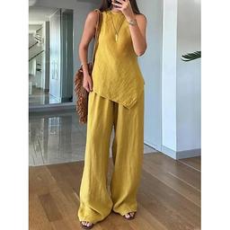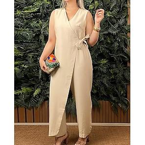 Solo per APPPer donna Normale Pantaloni in lino e cotone Streetwear Tinta unica Senza Maniche Scollo a V Quotidiano Uscire Vestibilità regolare Nero Bianco Giallo Estate