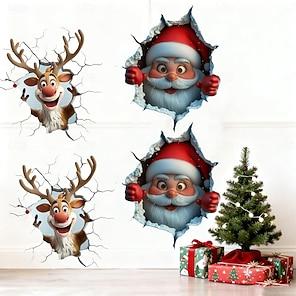 Solo per APPadesivi murali natalizi creativi 3d muro rotto cartone animato renna vinile rimovibile murale festa sfondo soggiorno decorazione della casa per atmosfera natalizia