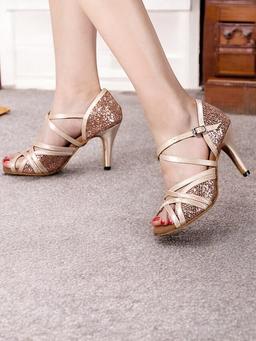 scarpe da ballo latino da donna scintillanti in oro rosa con suola in morbida pelle scamosciata – tacchi glitterati con cinturino e fibbia regolabile per eventi da ballo e feste