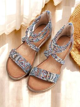 Solo per APPsandali piatti con perline floreali in stile bohémien da donna – sandali gladiatore slip-on in stile etnico per gite in spiaggia e vacanze estive