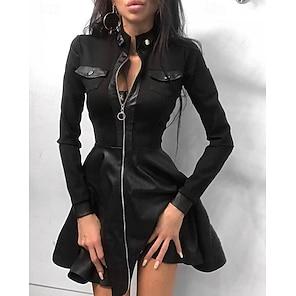 Solo per APPPer donna Mini Abito Abito nero Abito in pelle Moda Moderno All'aperto Ferie Uscire Vestibilità regolare Semplice Manica Lunga Collo alla coreana Nero Autunno Inverno