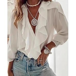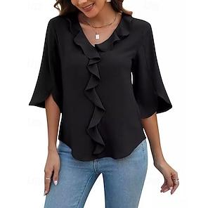 Per donna Taglie Forti Top estivi Caldo Sexy Manica Corta Scollo a V Top Regolari Uscire Weekend Nero Bianco Giallo Rosa Verde Estate