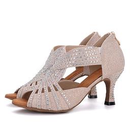 sandali da ballo con strass da donna – scarpe da ballo da sala scintillanti con punta aperta e chiusura a cerniera per eventi di salsa, latino e danza