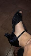 scarpe da ballo da donna con cinturino a T glitterato nero e suola in morbida pelle scamosciata – comode scarpe da ballo da sala aperte con tacco medio per salsa latina