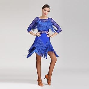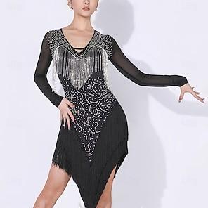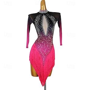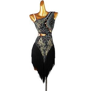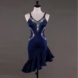 vestito da ballo salsa latino con cristalli/strass da donna senza maniche in spandex alto
