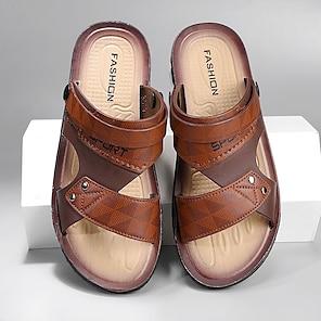sandali da uomo in similpelle marrone con puntale e dettagli cuciti a mano - calzature estive slip-on in stile vintage