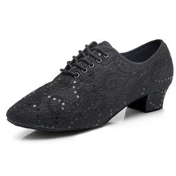 scarpe da ballo da donna in pizzo nero con tacco medio - eleganti scarpe da ballo latino e da sala con paillettes per esibizioni