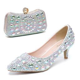 scarpe con tacco a gattino impreziosite da cristalli da donna e pochette abbinata - eleganti décolleté da sposa con strass e borsa da sera
