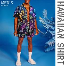 Per uomo Grafico Graffiti fenicotteri Set di camicie Set Camicia Camicia hawaiana estiva Maniche Corte Collo ripiegato Tropicale Hawaiano Casual Vacanza Sport & Outdoor Streetwear Bottoni Elastico in