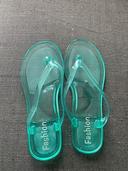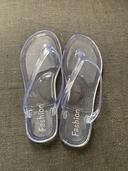 Sandali da spiaggia perfetti. Originale perché trasparente sta bene con tutto. Lunghezza del piede 9 pollici e mezzo = 38. Taglia perfetta. Odore di gomma, normale visto che i sandali sono di gomma. Consegna rapida. Molto soddisfatto!