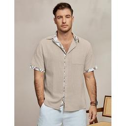 Voor heren Linnen overhemd Zomer overhemd Normaal shirt Strand hemd Effen Vakantie Hawaii Wit blauw Groen Khaki Korte mouw Revers Lente zomer Kleding Voorvak