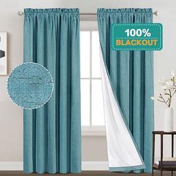 Linnen Textuur Gordijnen voor Slaapkamer Solide 100% Blackout Thermisch Geïsoleerd met Witte Voering Kamerdonkerende Gordijnen voor Woonkamer Crèche 2 Stuks B52 x L84