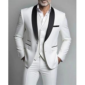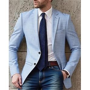 Voor heren Blazer liiketoiminta Cocktailparty Bruiloft Modieus Casual Lente & Herfst Polyester Gestreept Zak Knop Comfortabel Dubbele rij knopen Blazer Zwart Wit Hemelsblauw