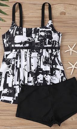 Dames Zwemkleding Tankini 2 stuks Jongen been Zwempak Blote rug Hoge taille Vakantie Strand Kleding Geometrisch Scoophals Mouwloos Badpakken